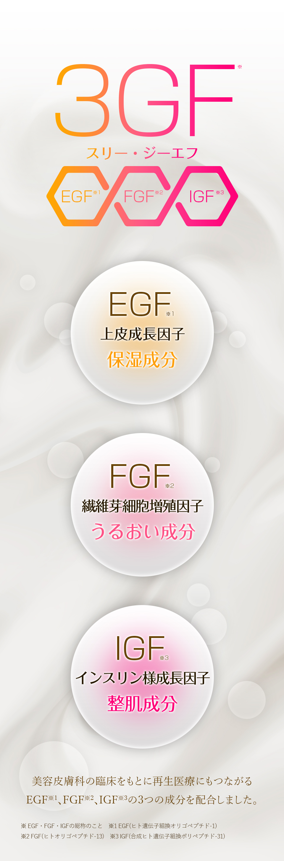 そこで美容医療の現場で注目され、スキンケアへ応用されたのが 「3GF」。