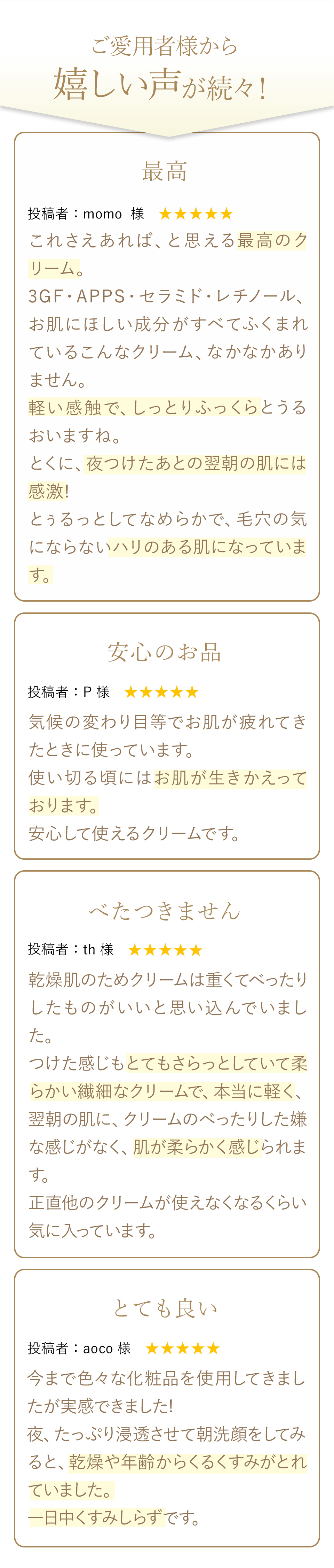 医師の臨床経験に裏付けられた成分だからこそ、年齢を重ねたお肌への信頼度が高いのです。