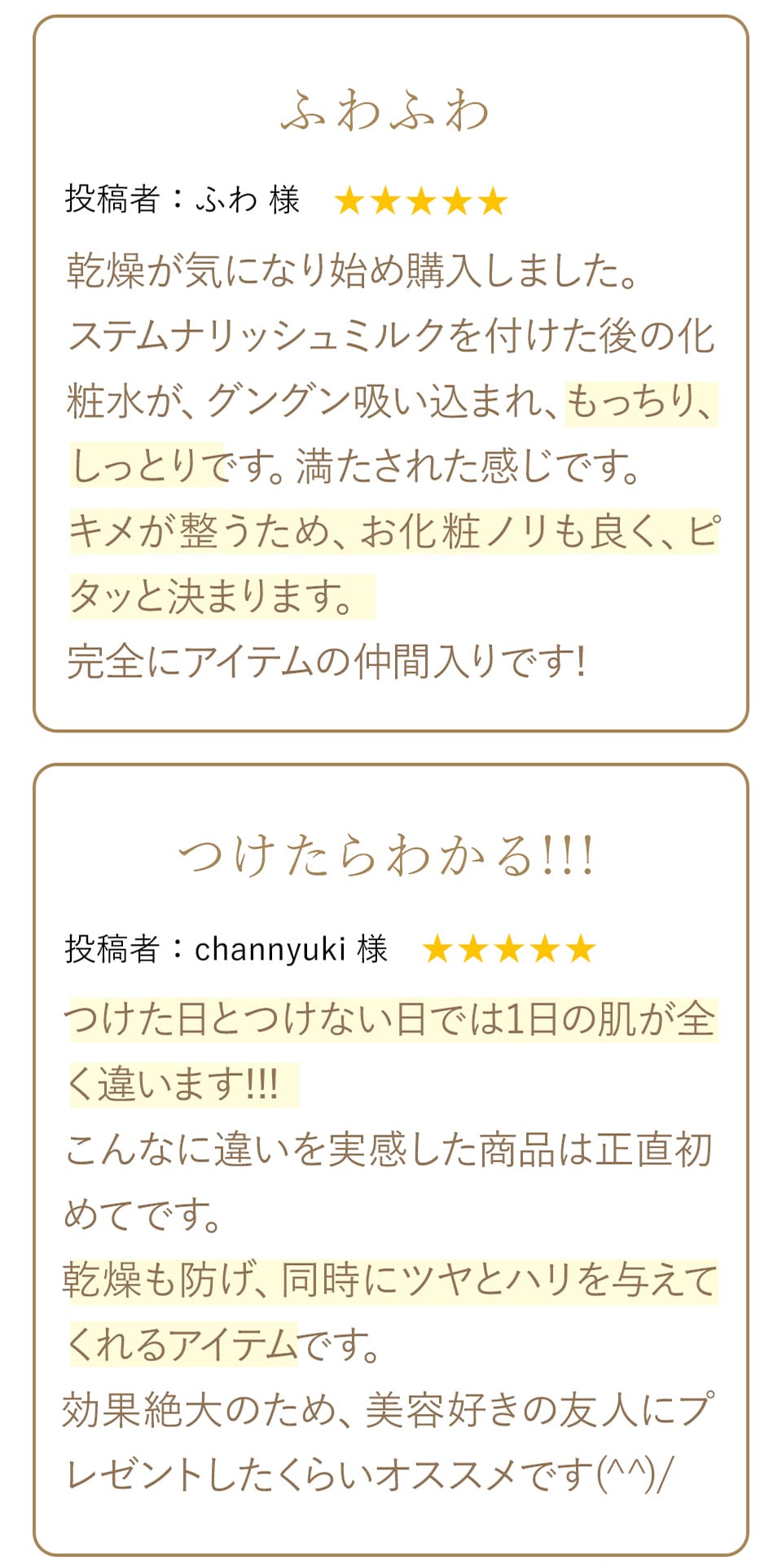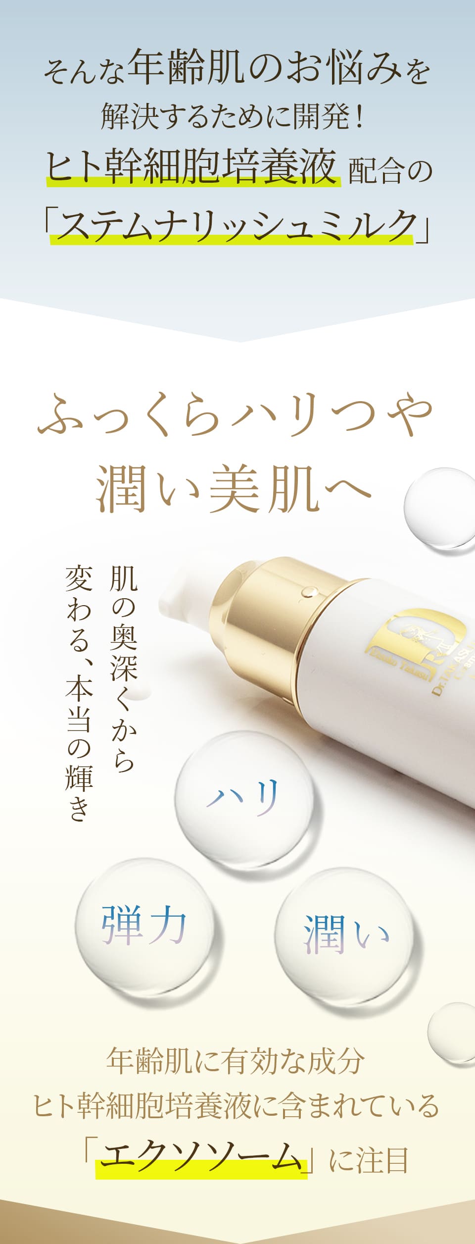 次世代コスメ「ヒト幹細胞培養液配合」 ステムナリッシュミルク >> ご購入はこちら |
