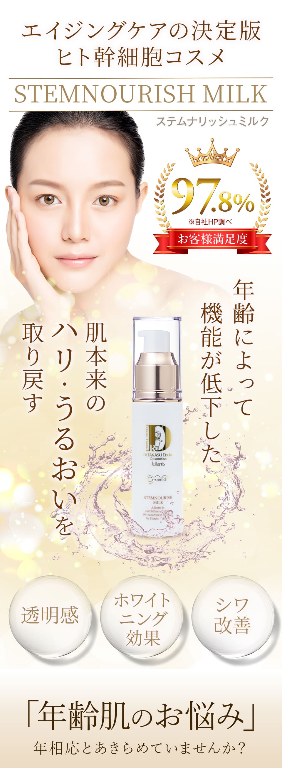 次世代コスメ「ヒト幹細胞培養液配合」 ステムナリッシュミルク >> ご購入はこちら |