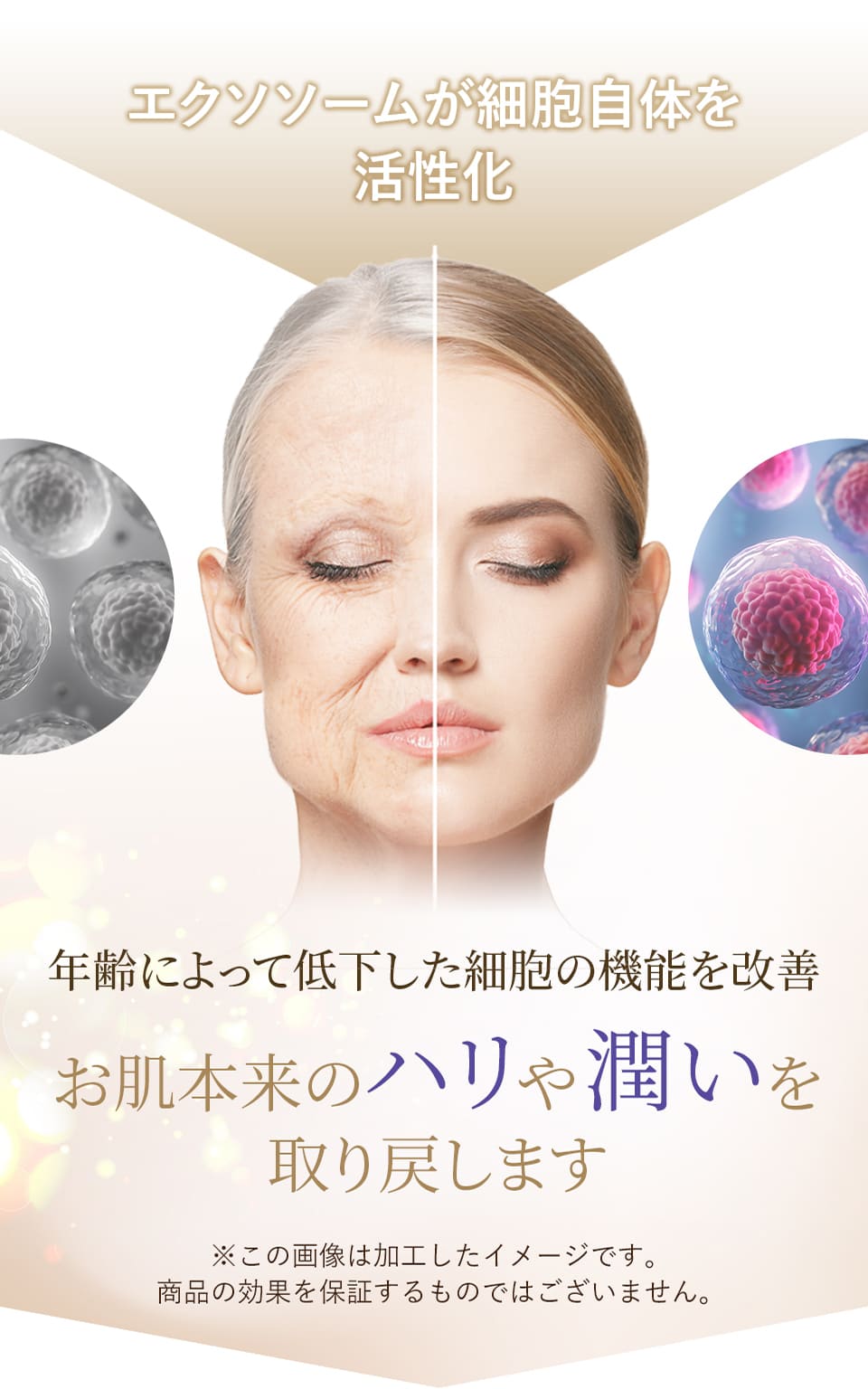 細胞全体の代謝を活性化し、コラーゲン、エラスチン、ヒアルロン酸の生成を促進。