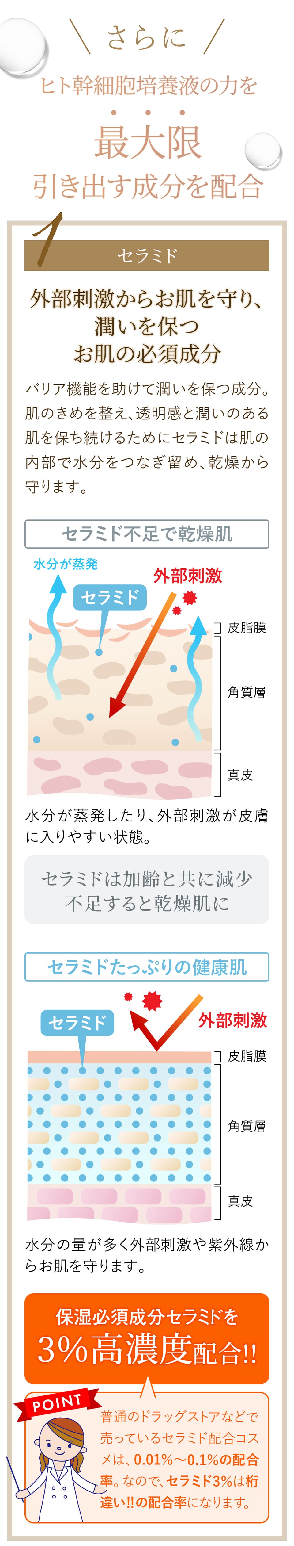 医師の臨床経験に裏付けられた成分だからこそ、年齢を重ねたお肌への信頼度が高いのです。