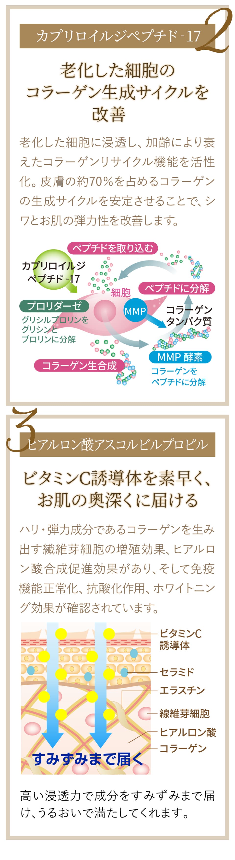 加齢によるたるみや小ジワのケアに欠かせない因子です。