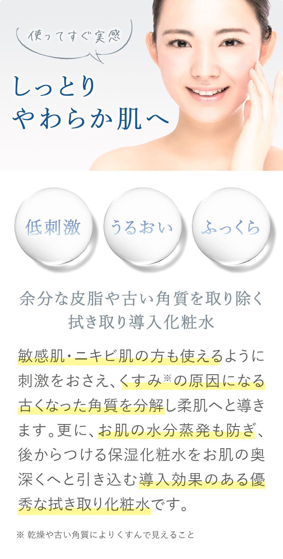 古い角質をため込まず、キメの整った明るい印象のお肌に導きます。