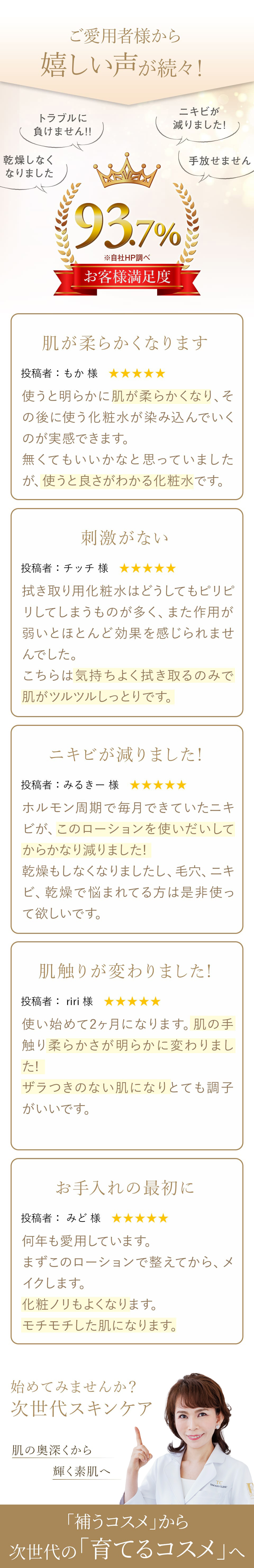 医師の臨床経験に裏付けられた成分だからこそ、年齢を重ねたお肌への信頼度が高いのです。