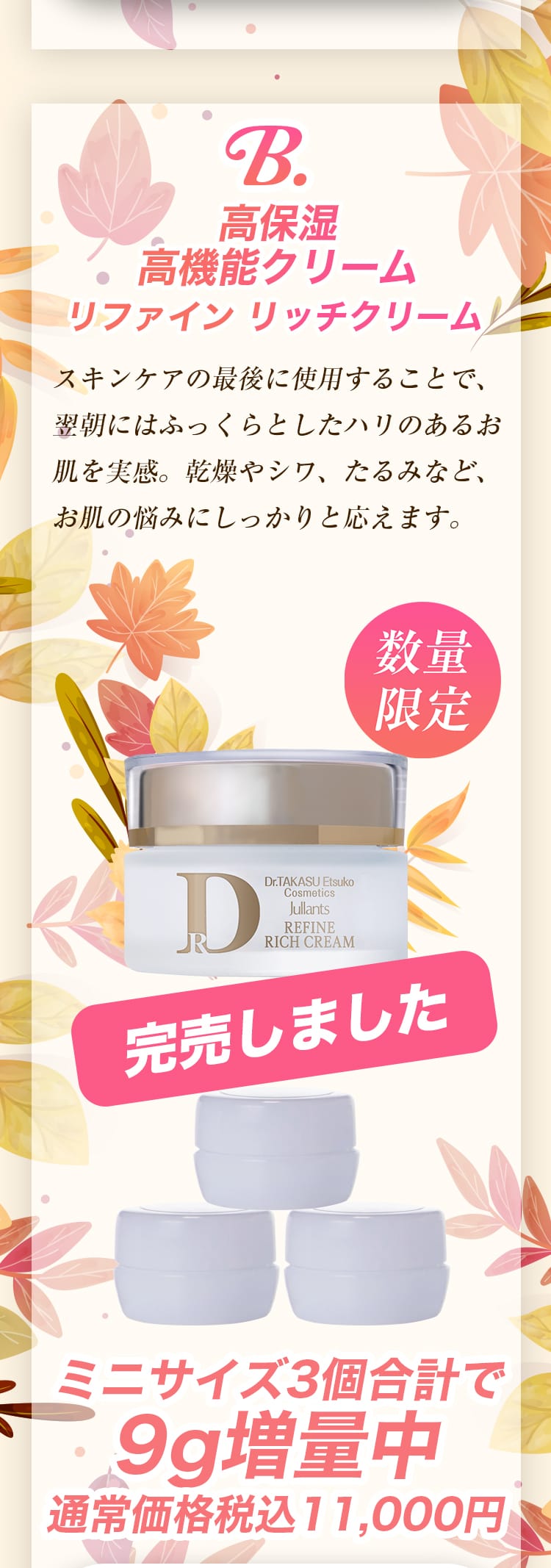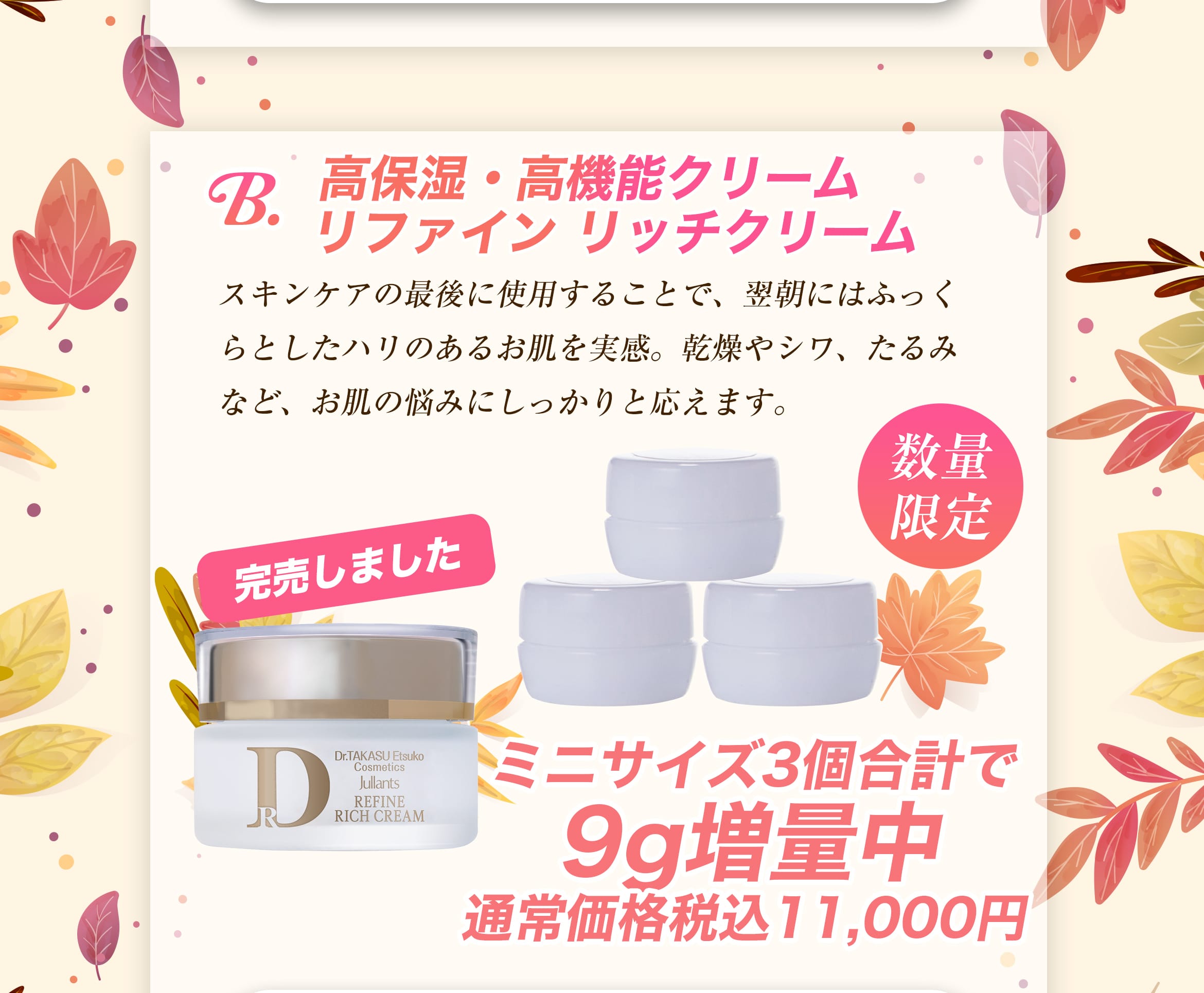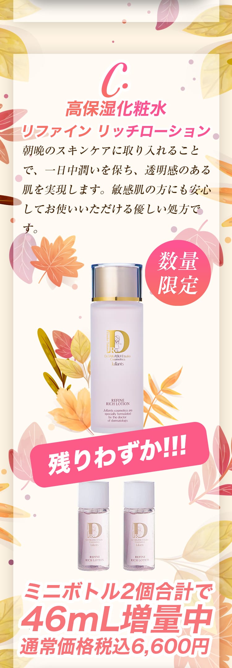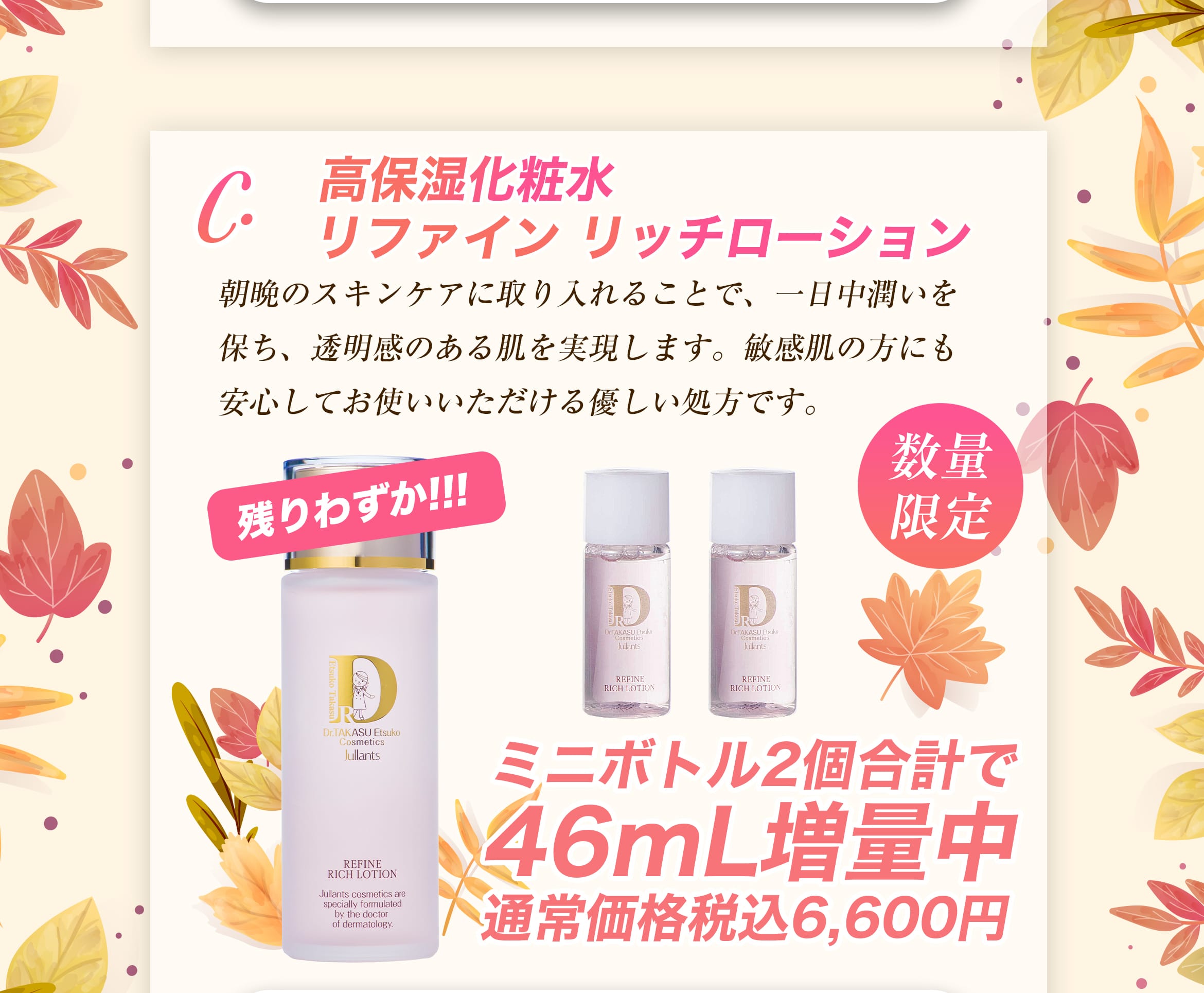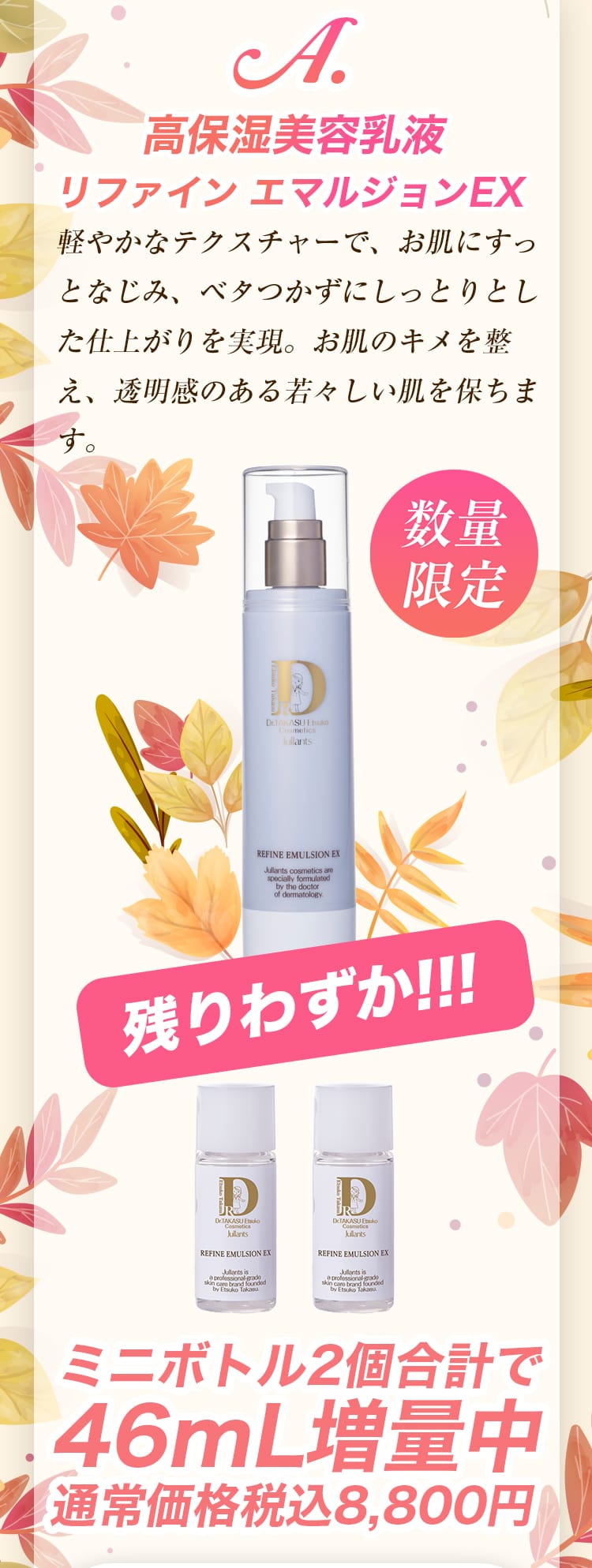 ジュランツでは、この季節にぴったりのアイテムを増量(ミニボトル付き)した、特別なオータム増量キャンペーンを開催いたします!