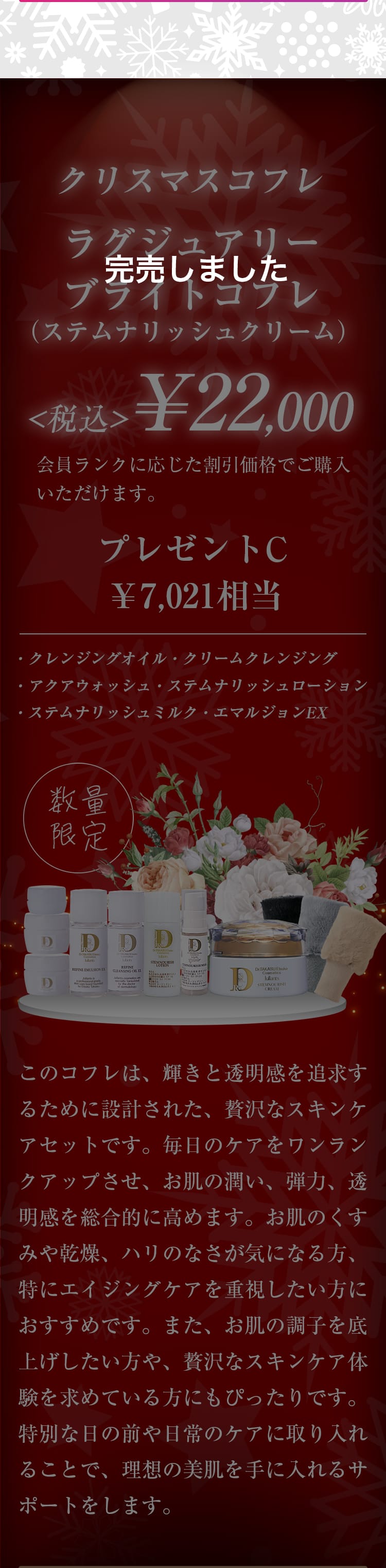 今年はさらに、エイジングケア最高峰のヒト幹細胞培養液を配合した、ステムナリッシュシリーズが、割引価格で登場!