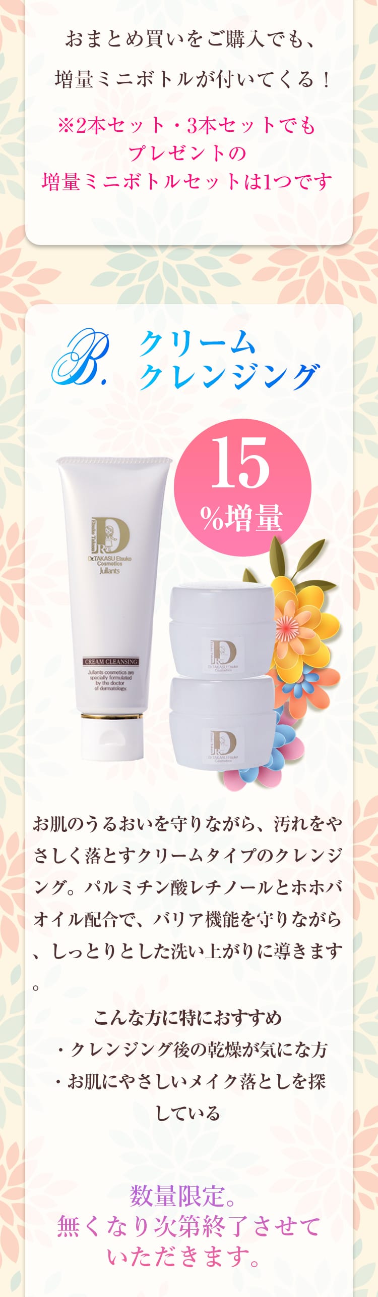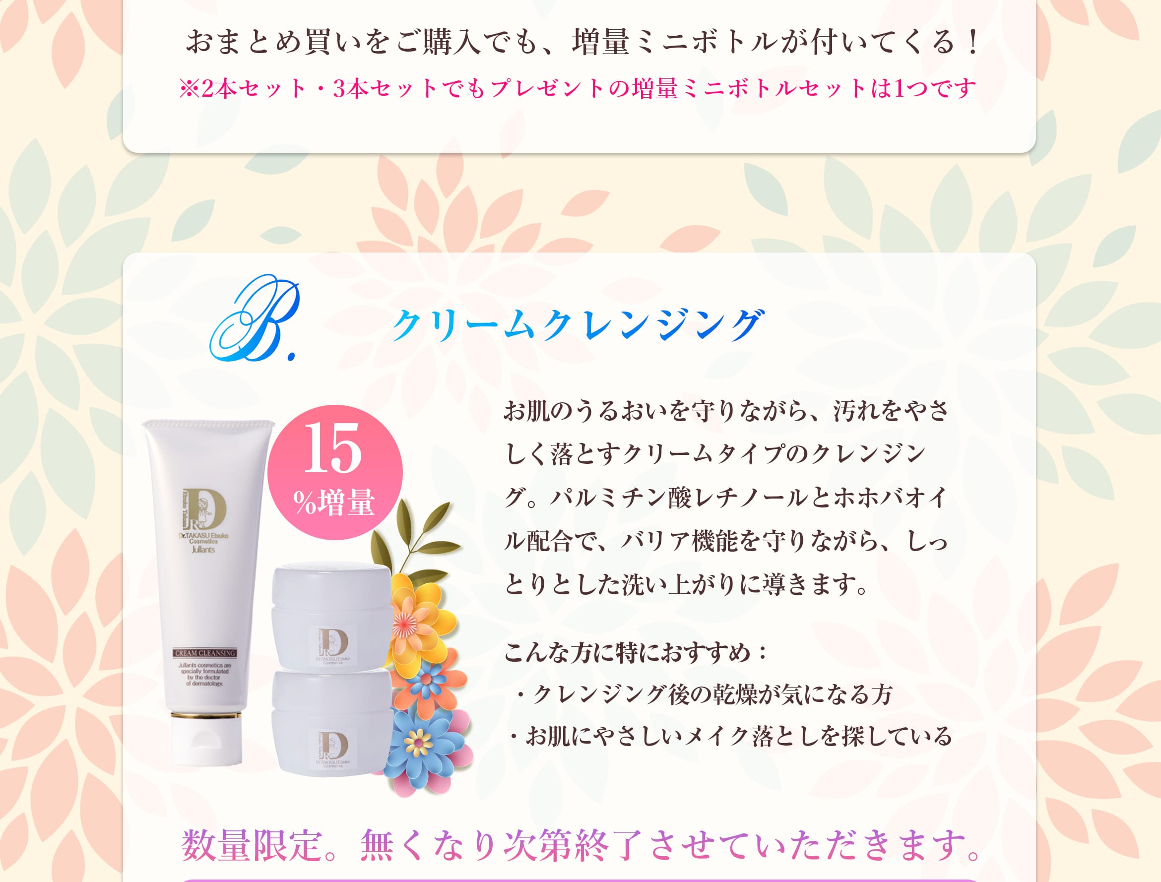 クリームクレンジング(単品・2本セット・3本セット)のご購入で、