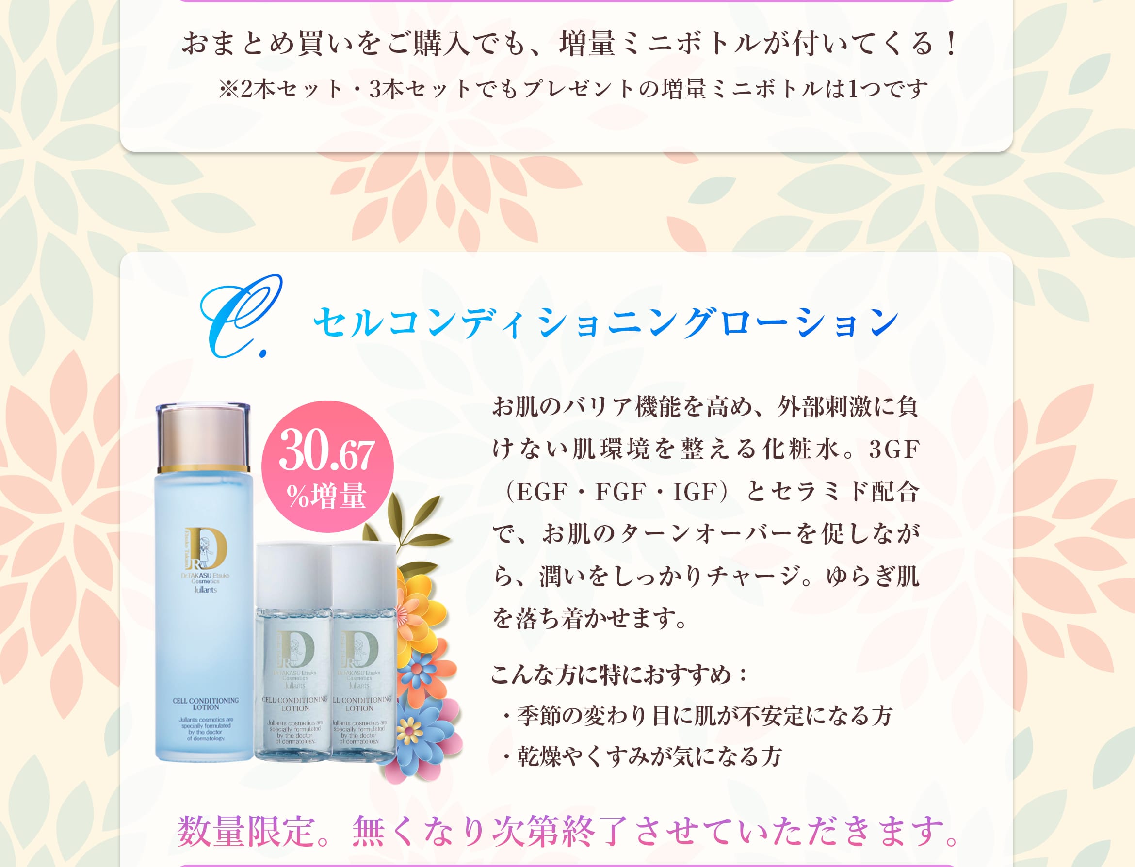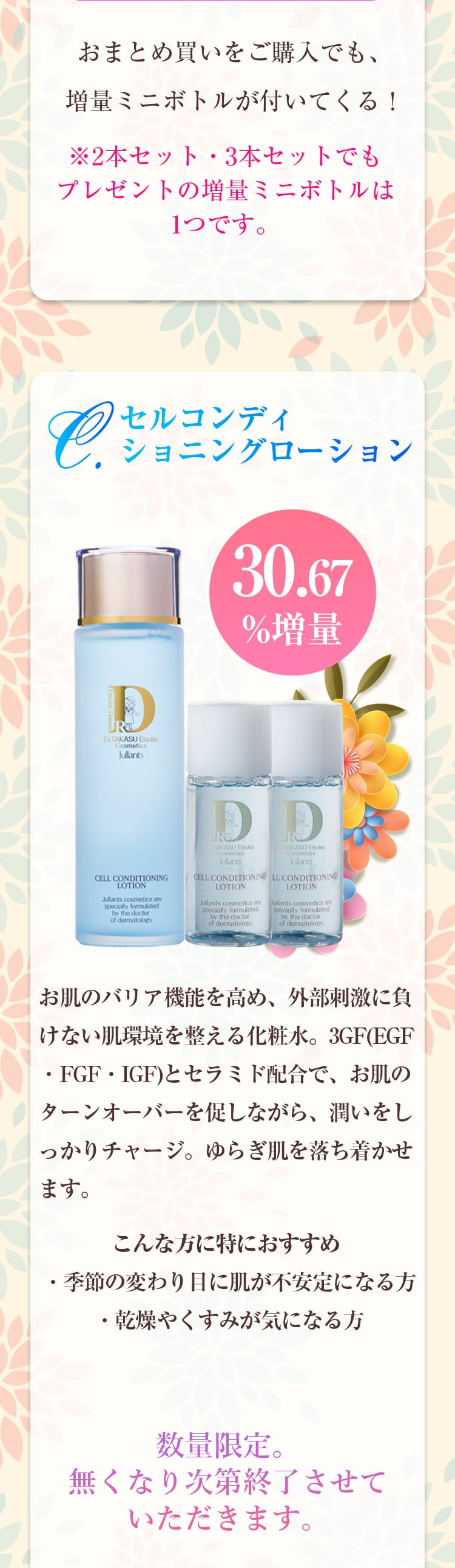 セル コンディショニングローション(単品・2本セット・3本セット)のご購入で、