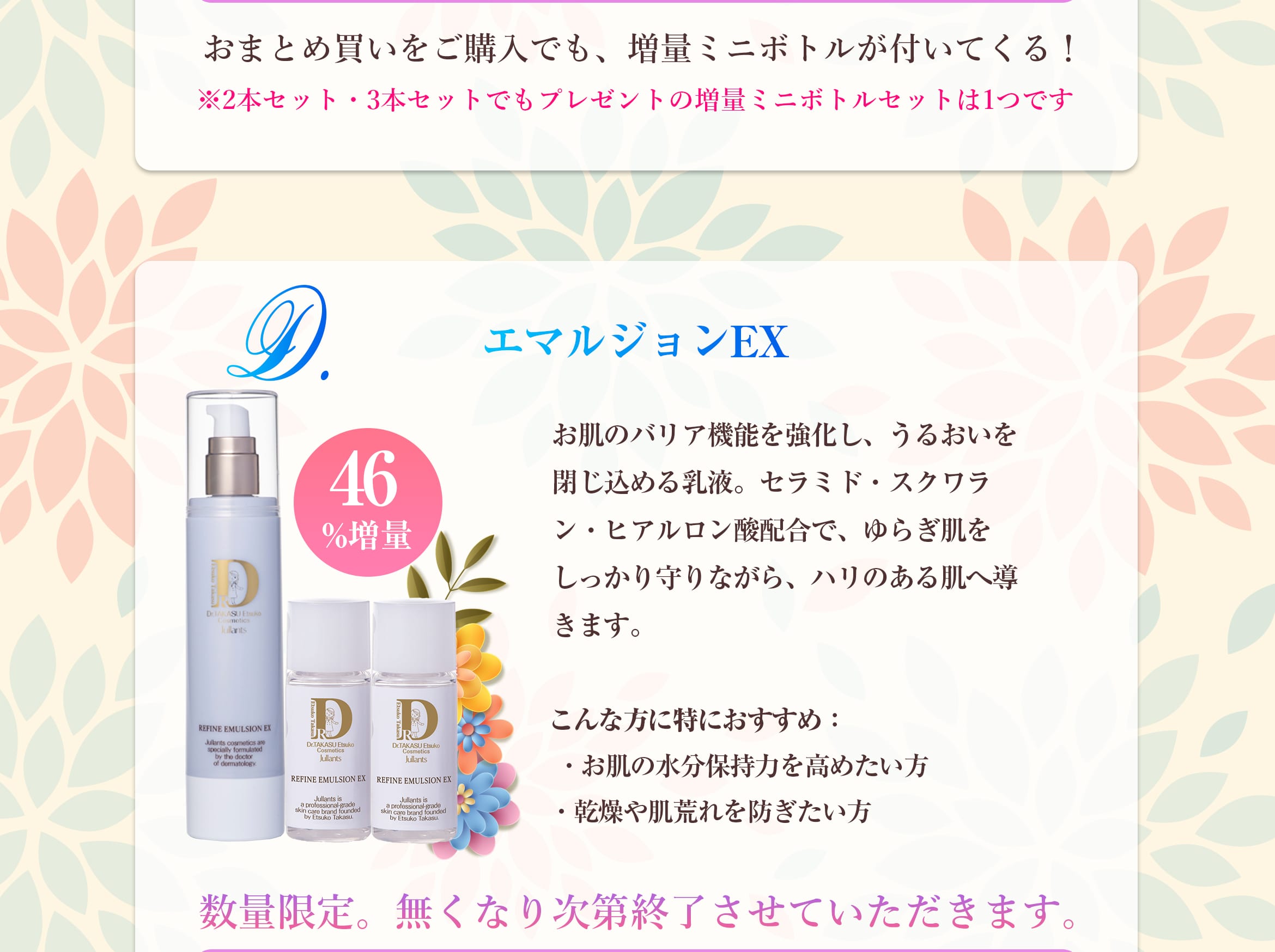 ベタつかず、サラッとしたつけ心地でもっちり素肌美へ 増量ミニサイズセットD リファイン エマルジョンEX ミニサイズ (23mL)2個 >> 詳細はこちら |