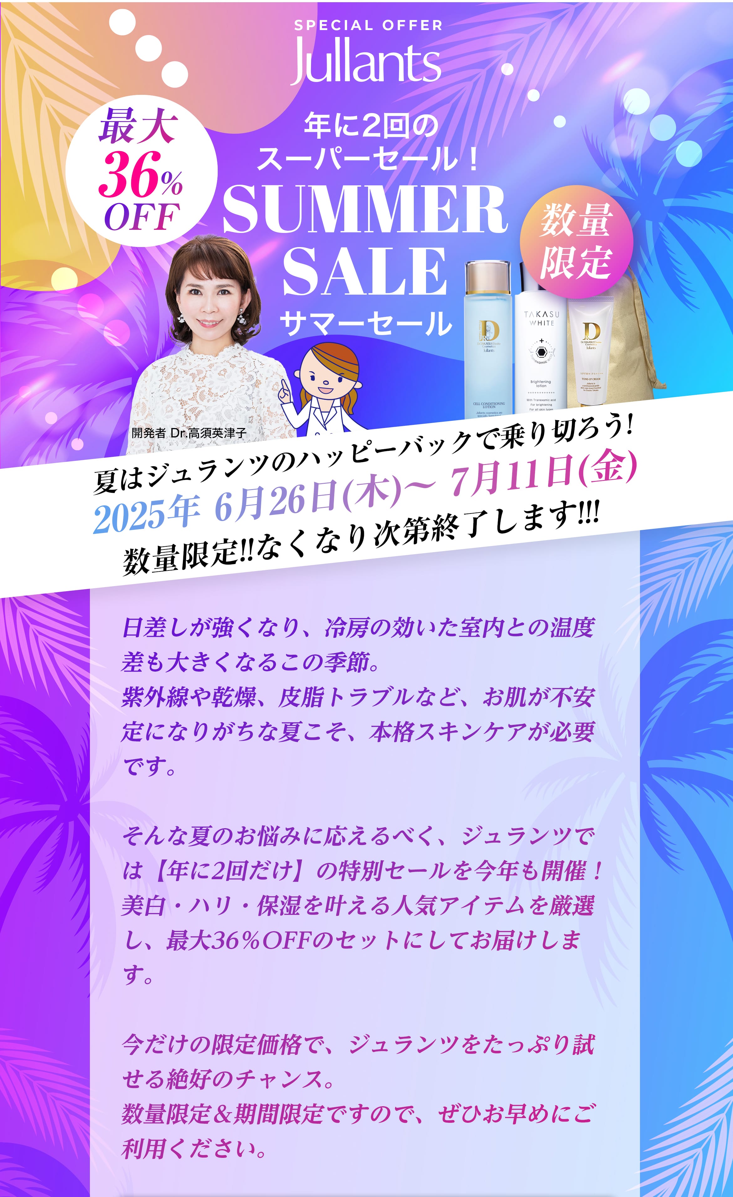 そんな夏のお悩みに応えるべく、ジュランツでは「年に2回だけ」の特別セールを今年も開催!