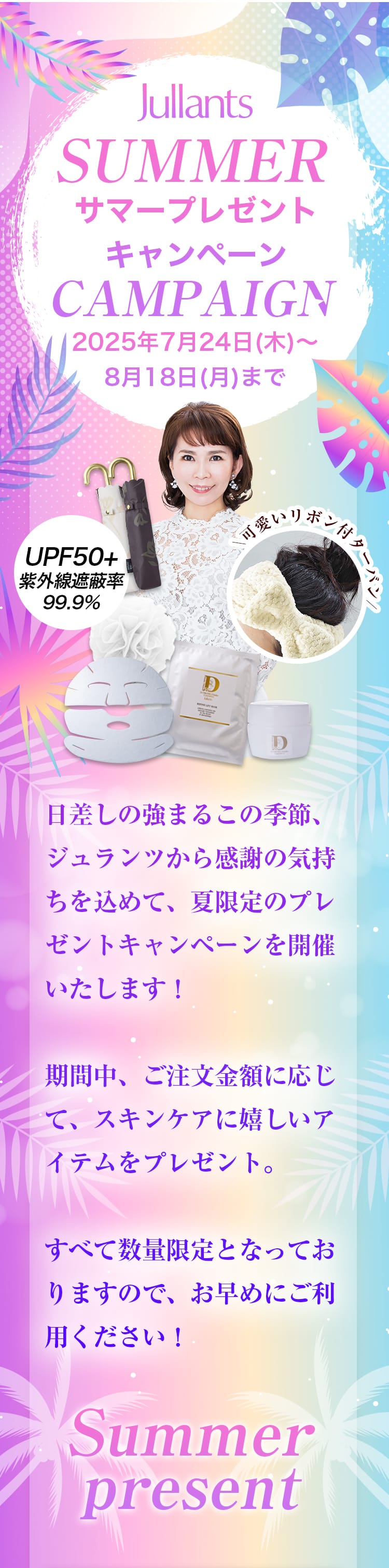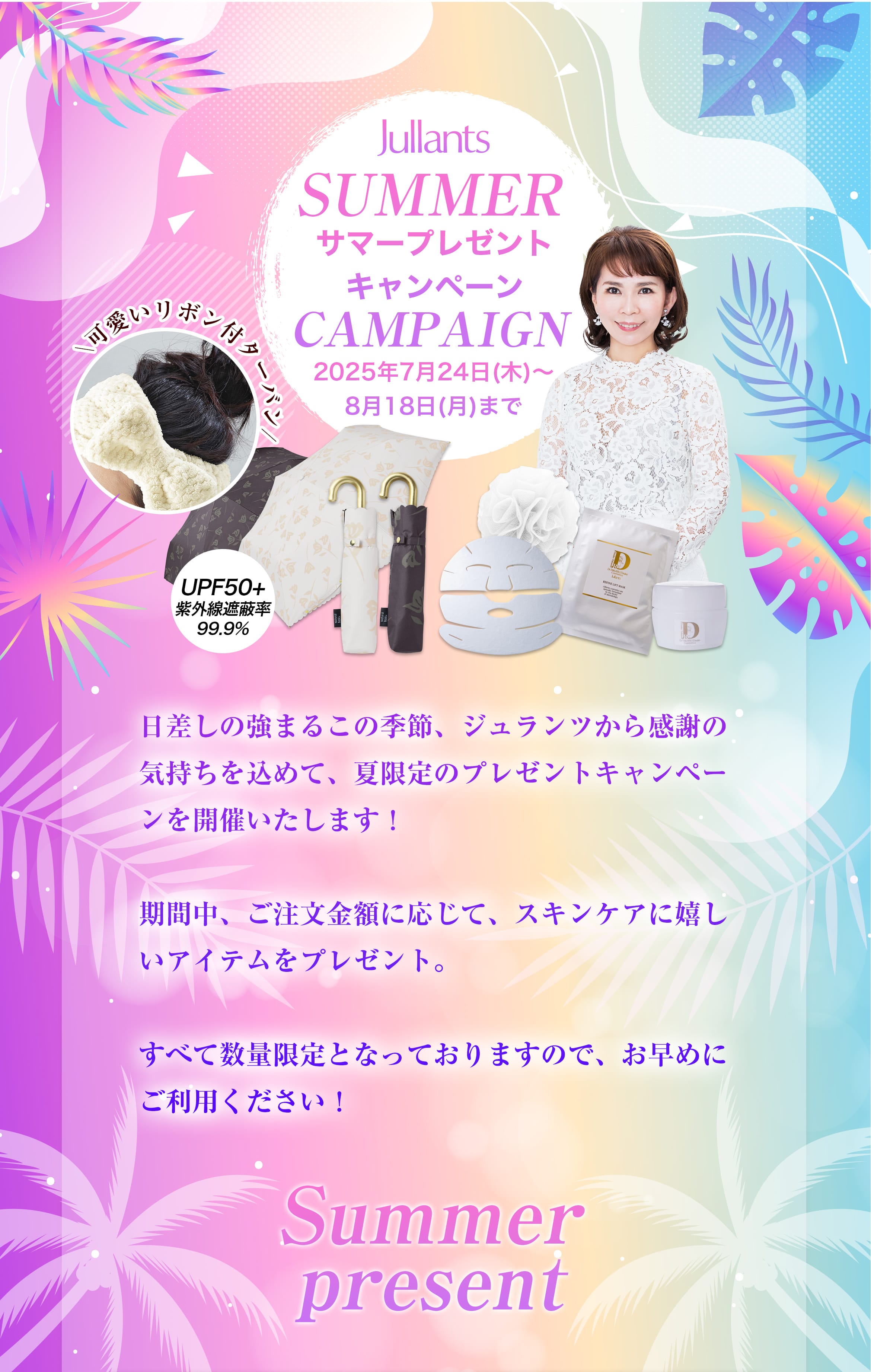 日差しの強まるこの季節、ジュランツから感謝の気持ちを込めて、夏限定のプレゼントキャンペーンを開催いたします!