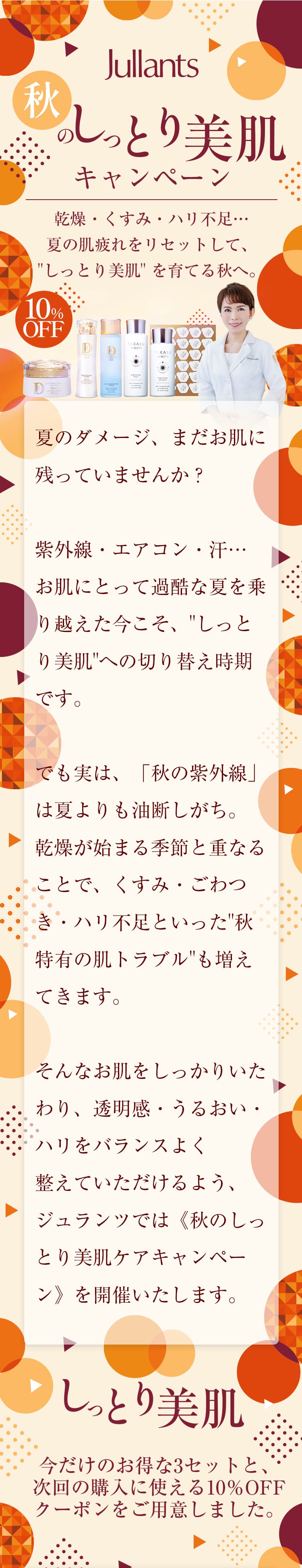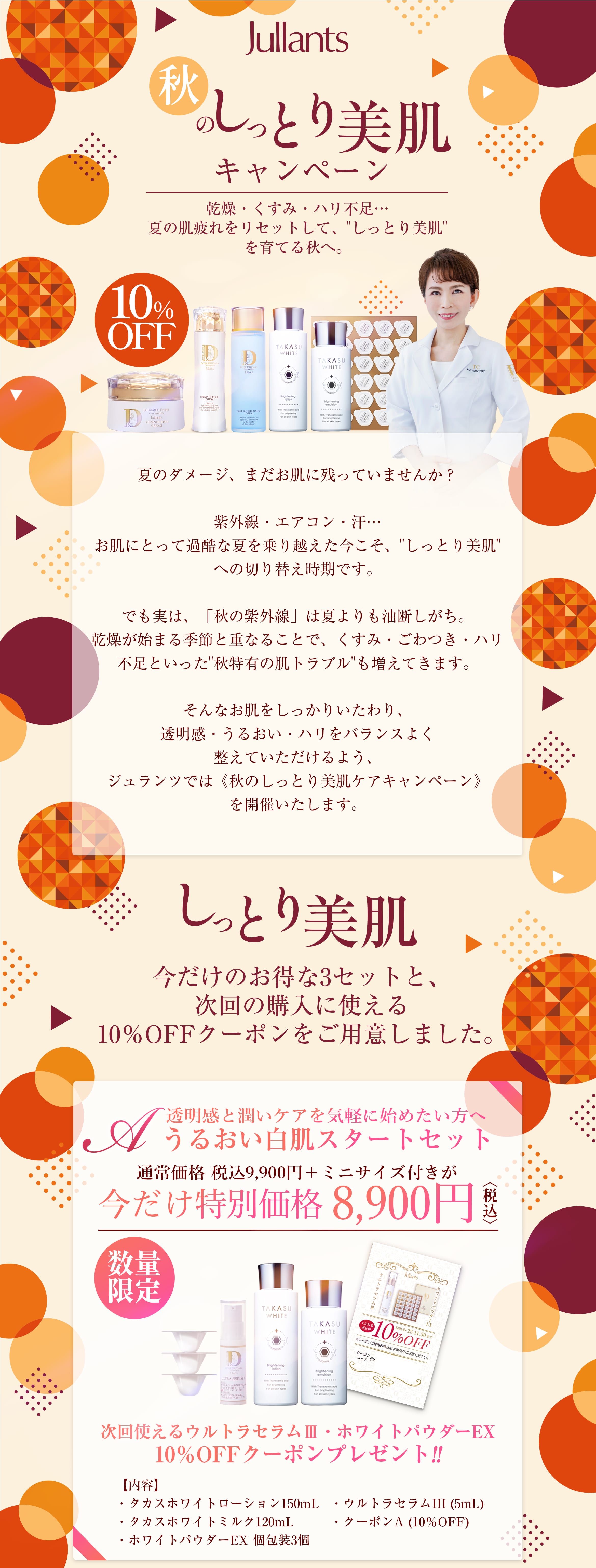 ジュランツでは<秋のしっとり美肌ケアキャンペーン>を開催します。
