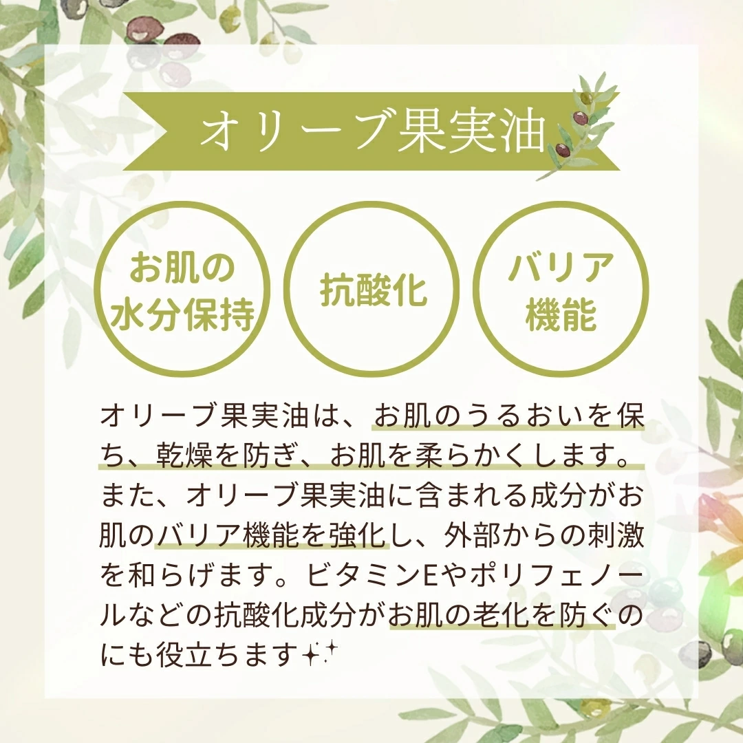 唇、爪、手をはじめ、顔やボディの乾燥や肌荒れが気になる部分など、どこにでも手軽にお使いいただけます。 オリーブ果実油(オリーブオイル)が角質層からの水分蒸散を防止し、お肌を柔らかにします。 乾燥肌に不足しがちなセラミドを配合することで、角質層の保湿機能をサポート。 自然のオイルを使用しているので、お肌の弱い方でもご利用いただけます。 オレンジやゼラニウムのアロマがほのかに香りリラックス効果も。