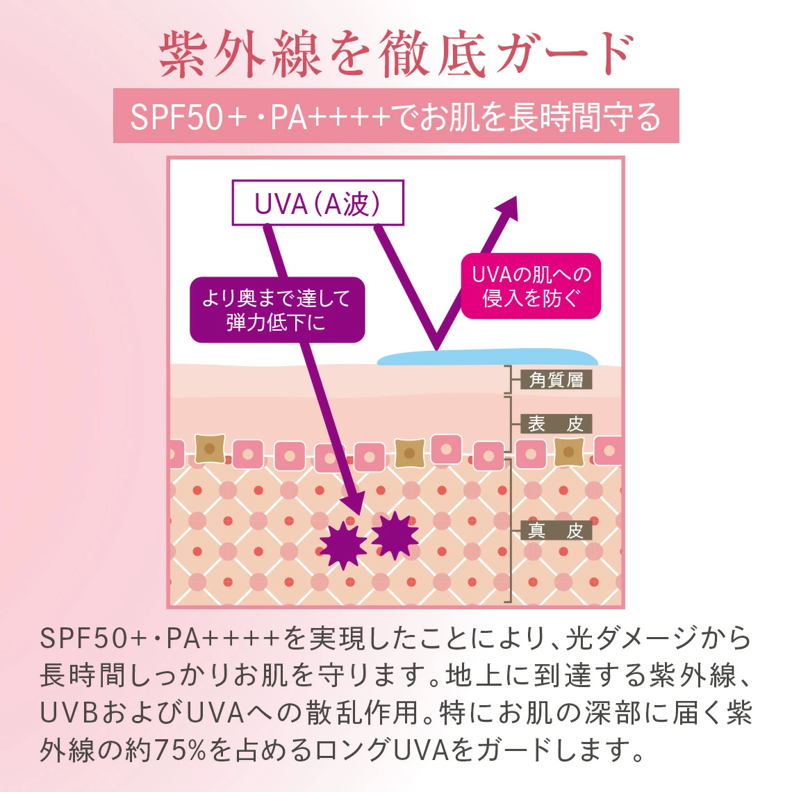 SPF50+・PA++++を実現したことにより、光ダメージから長時間しっかりお肌を守ります。