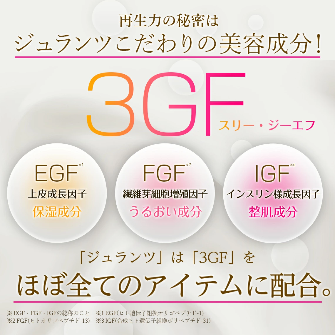3GF*1 を贅沢に配合したジュランツコスメ。