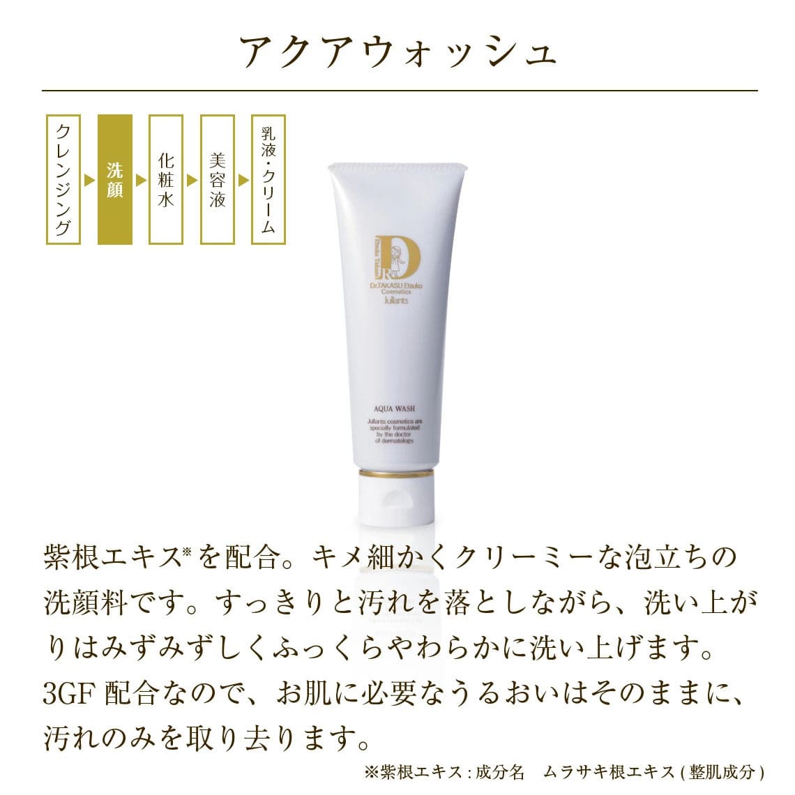 美肌成分3GF*1 がお肌の再生力に働きかけ、さらに紫根エキスが血行を促し、洗顔しながら肌の新陳代謝をアップ。